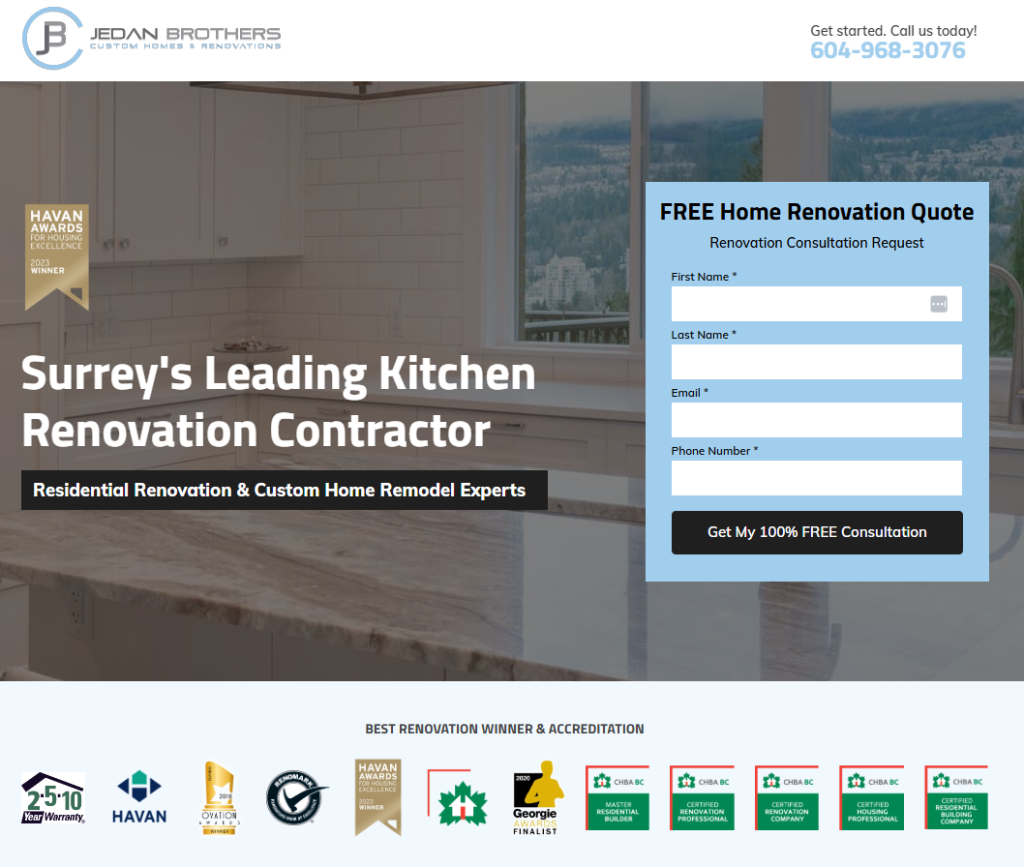 - Headline 3: Call to action (“Call for a Free Estimate”)